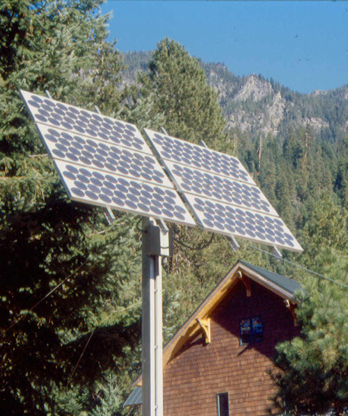 By employing both active and passive solar strategies we were able to completely electrify and heat the home with renewable resources. The many windows on the long south elevation gather heat that is stored in the concrete floor. For longer term heat storage thermo-siphon air panels feed thermal storage rooms stocked with barrels of water that act as a heat sink. During long periods of limited sunlight this reserve heat can be called upon to warm the home. Electricity is gathered by a remote pole mounted array, whose angles can be adjusted seasonally. It was important, however, to design the house so that it did not look and feel as if gathering solar energy was the only guiding principle in its design.